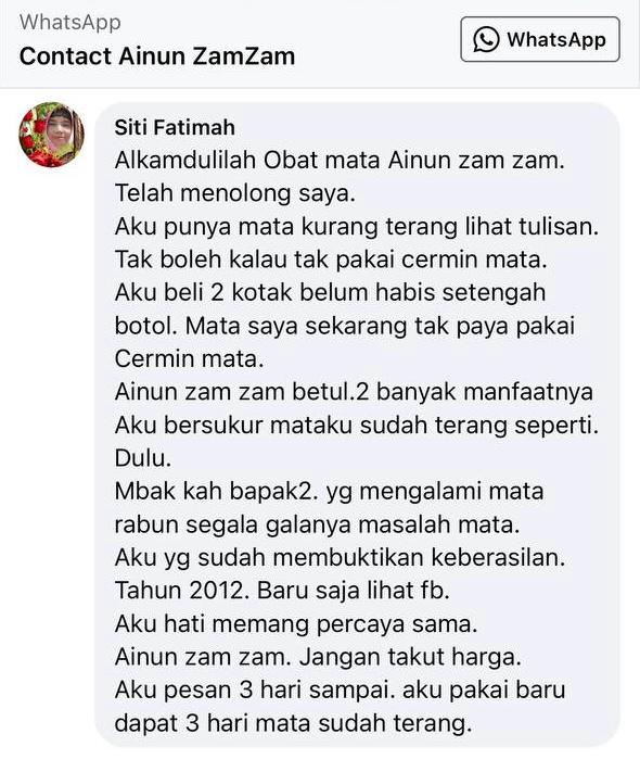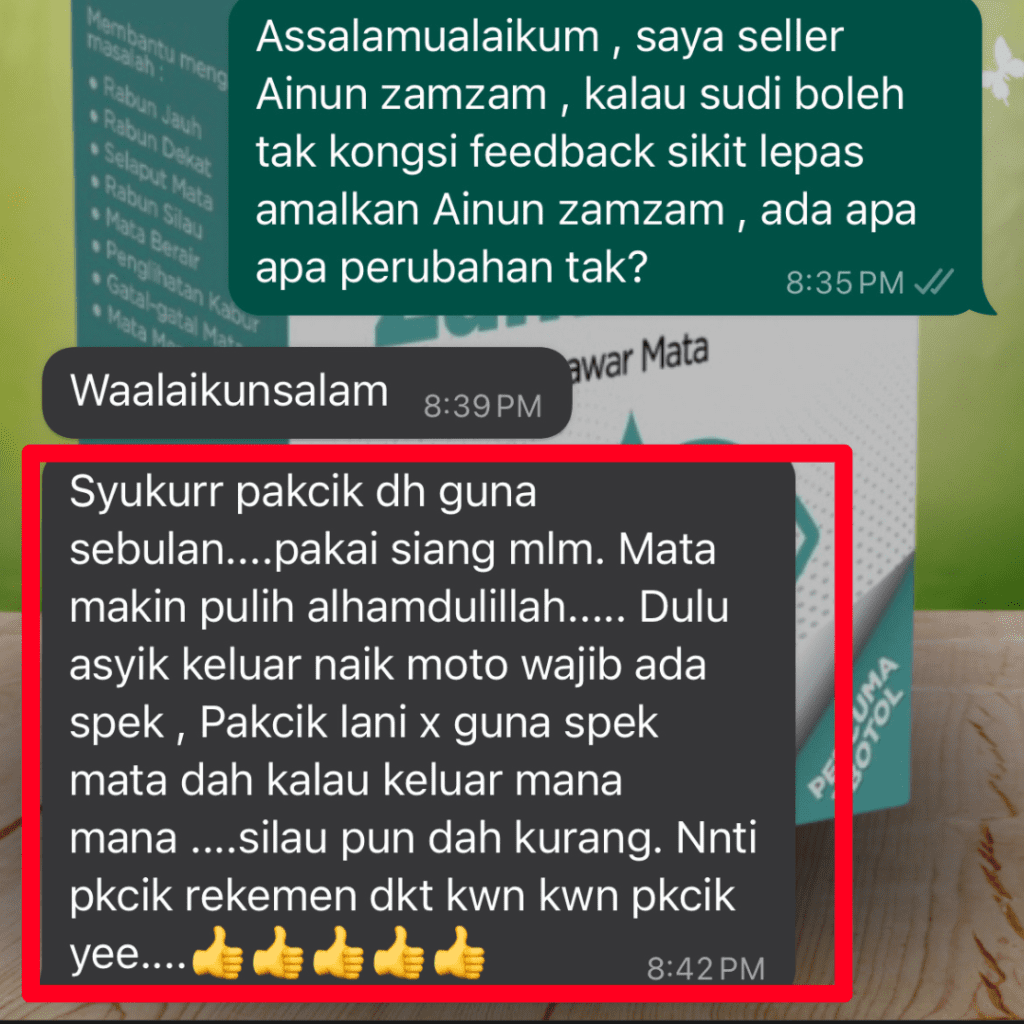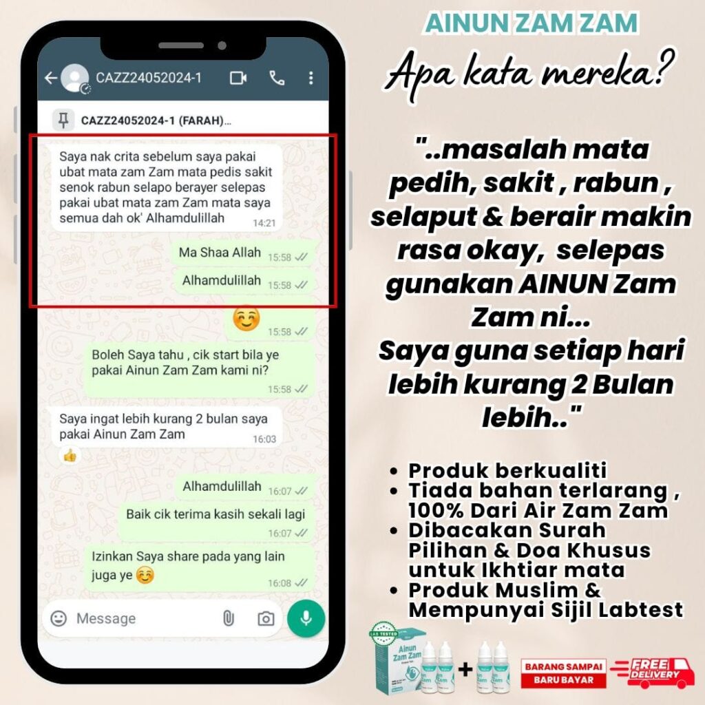 Mencegah Lebih Baik drpd merawat InsyaAllah, dengan mengamalkan Ainun ZamZam ni , anda mampu cegah masalah seperti Rabun,silau,katarak,selaput.
