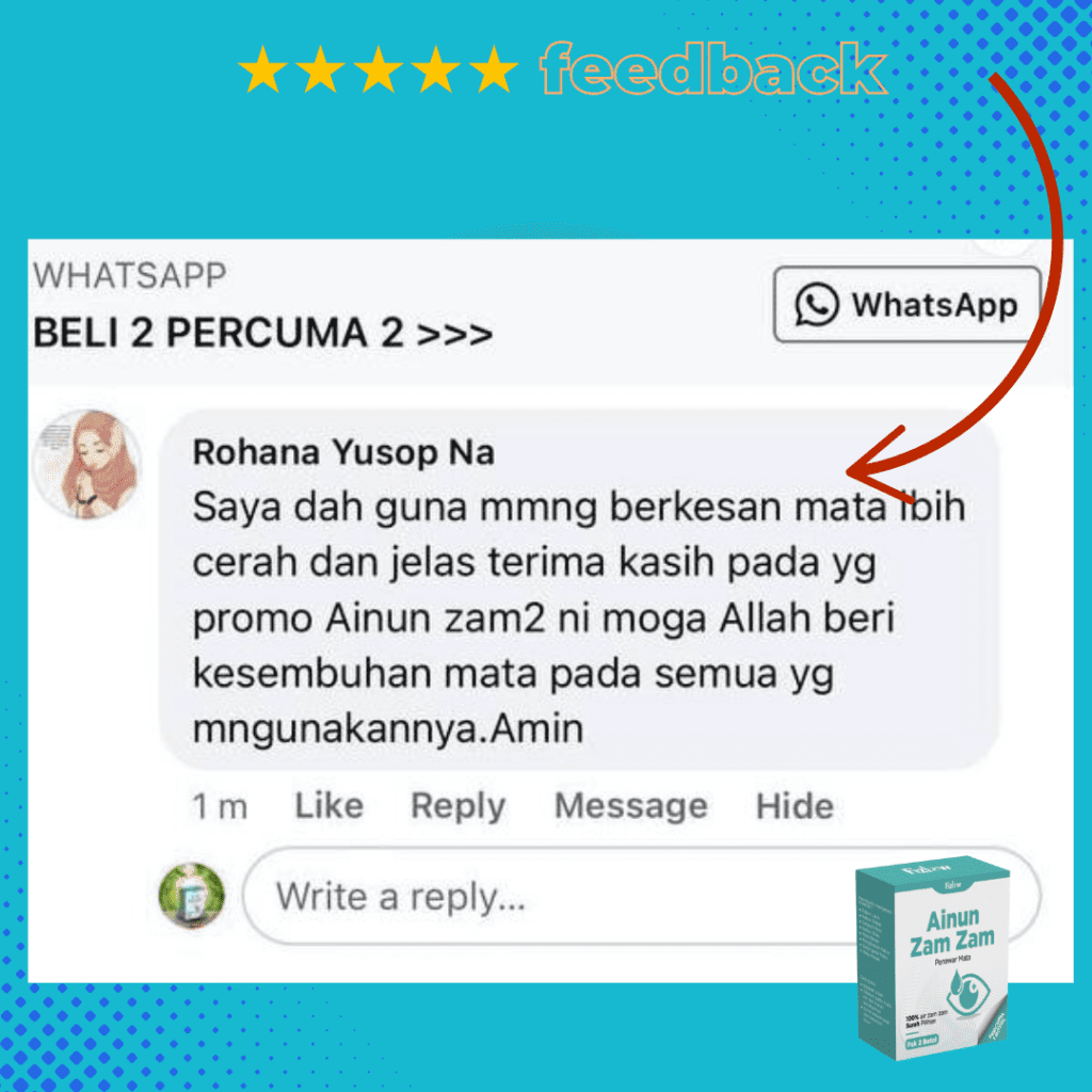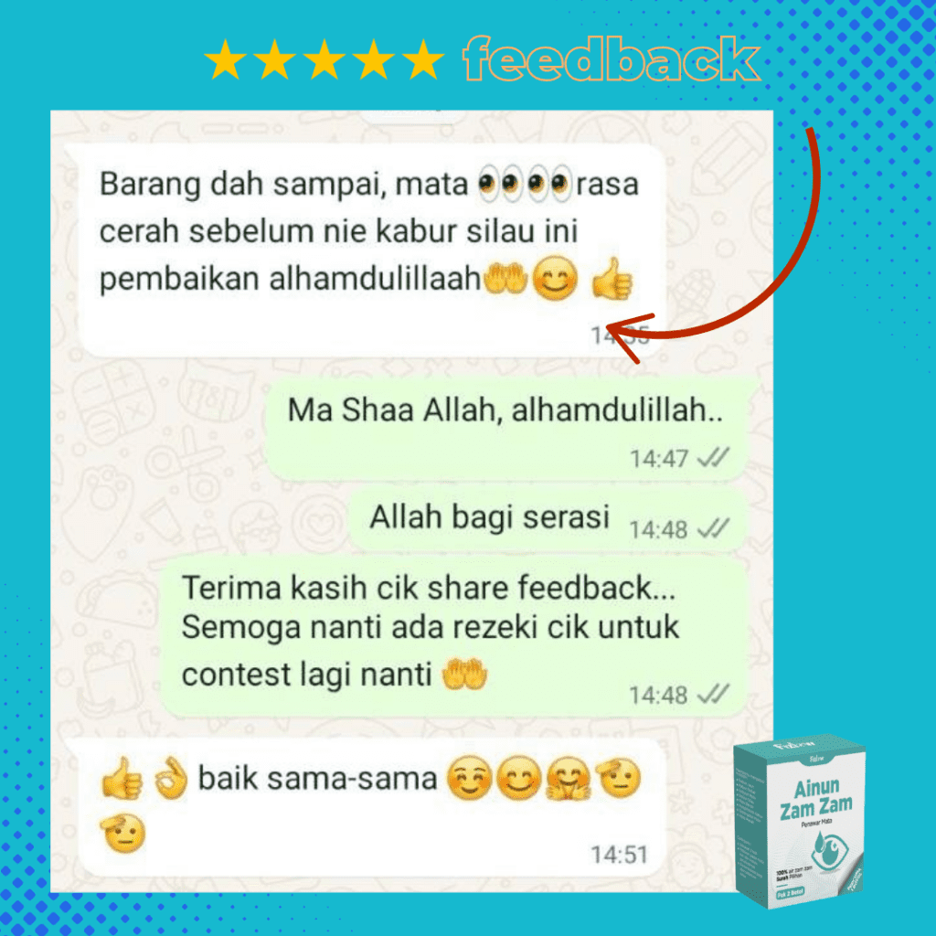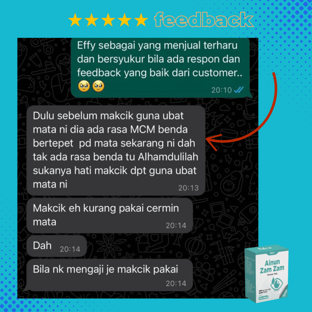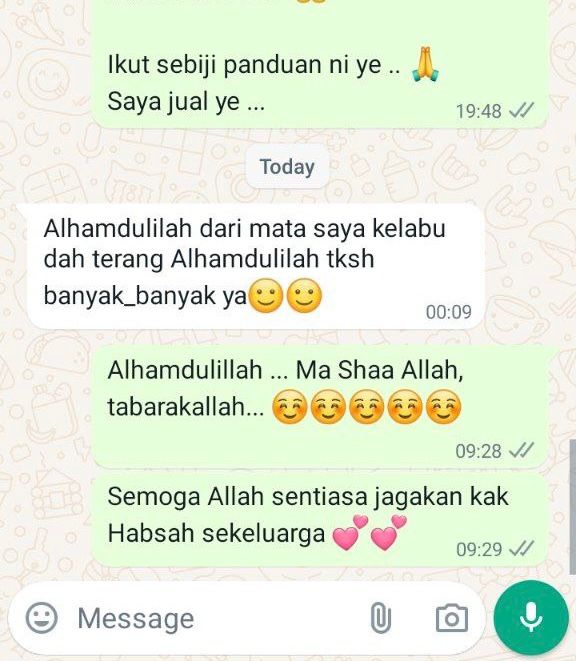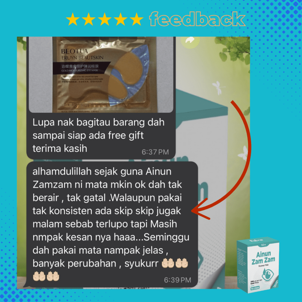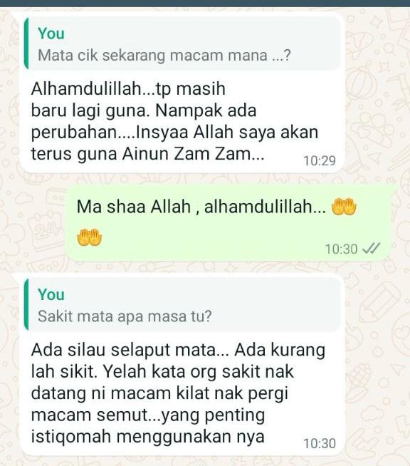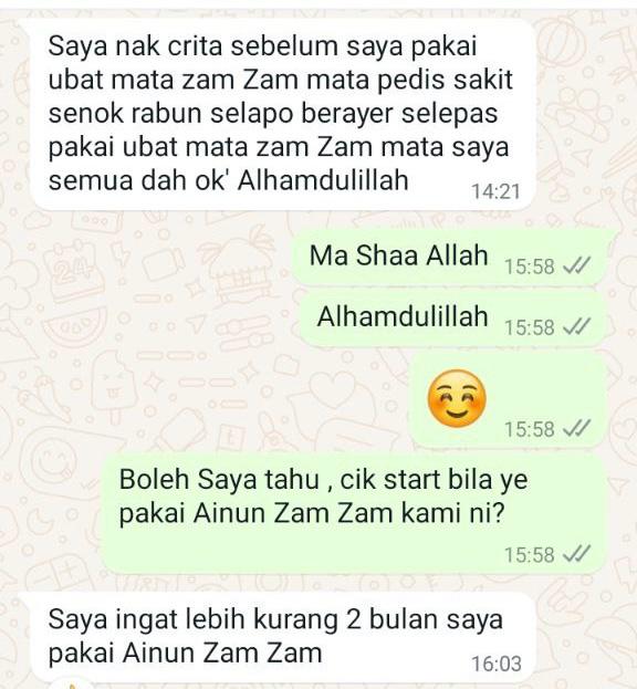 Sebelum ni mata pedih, senak, berair. Selepas guna Ainun ZamZam dah baik