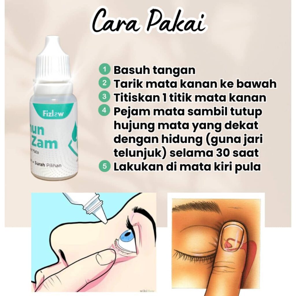 selawat 3x kemudian ,Titiskan pada mata kanan dan kiri secukupnya . Guna seawal pagi dan sebelum tidur